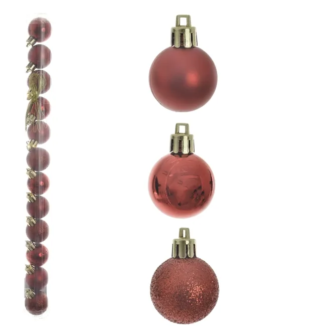 Bola Natal Em Tubo Mista C/12 Und (Vermelho) 6Cm (
