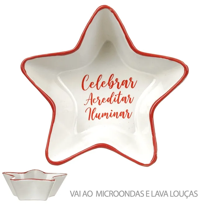 Bowl Natal Estrela - Branco Vermelho - 4,1cmx11,6Diametro