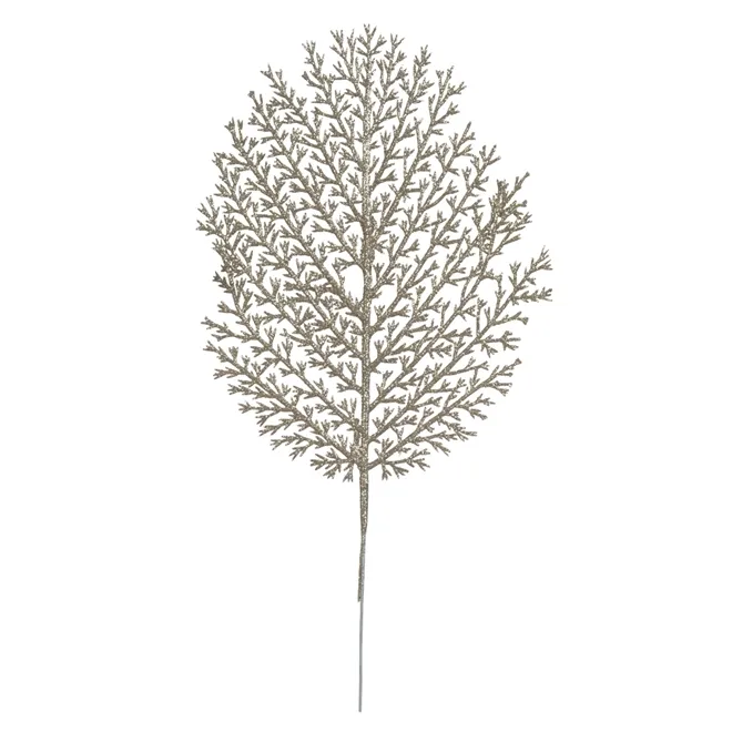 Folha Samambaia Natal C/Glitter - Champanhe - 27cm