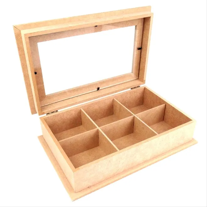 Caixa MDF Chá 6 Divisórias com Vidro - REF.85 - 29x18x9cm