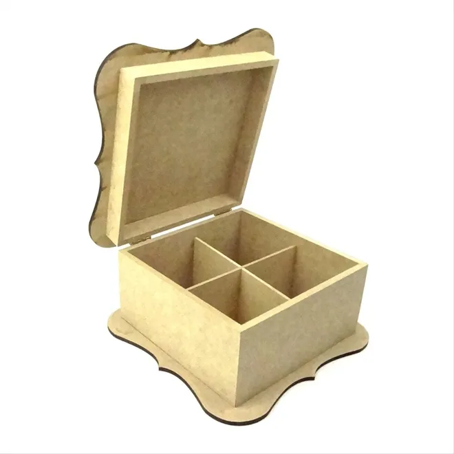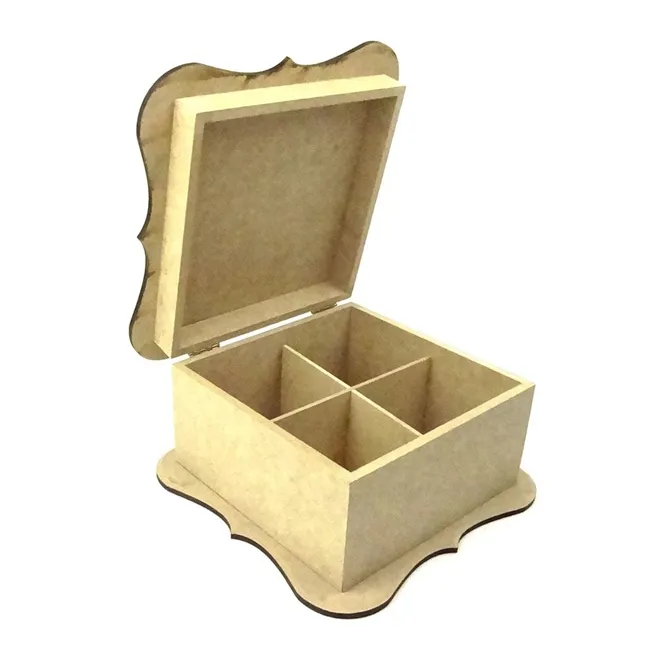 Caixa Chá MDF Turca Ondulado Grande - REF.68 - 4 Divisorias 20x20x11cm
