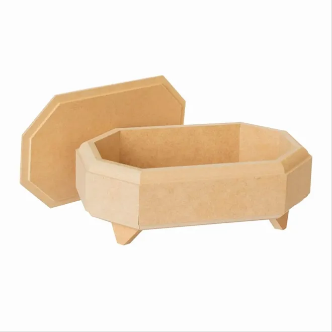 Caixa Russa Oitavada Tupiada Retangular c/ Pé MDF- Média - 24,5X15,5X7cm