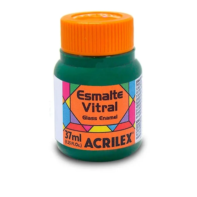 Esmalte Vitral - 37ml - Verde Veronese - 512 da Acrilex. Tinta de alta qualidade, à base de solvente. As 31 cores do Esmalte Vitral (6 metálicas) são opacas e brilhantes e apresentam ótima cobertura. Todas as cores são miscíveis entre si. Indicadas para vidro, porcelanas e faianças, pode-se imitar o efeito de vitrais trabalhando com a Pasta Relevo Vitral. Para fins exclusivamente decorativos.São excelentes tintas também para pintura de metal, madeira, papel vegetal, papelão, cerâmica, gesso ou acetato.Não resistentes a lavagens agressivas com produtos químicos domésticos e longa exposição ao tempo.