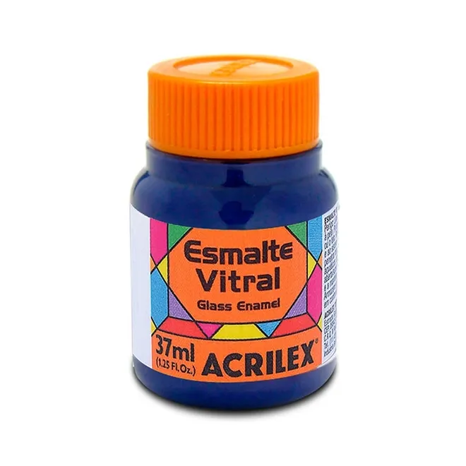 Esmalte Vitral - 37ml - Violeta - 516 da Acrilex. Tinta de alta qualidade, à base de solvente. As 31 cores do Esmalte Vitral (6 metálicas) são opacas e brilhantes e apresentam ótima cobertura. Todas as cores são miscíveis entre si. Indicadas para vidro, porcelanas e faianças, pode-se imitar o efeito de vitrais trabalhando com a Pasta Relevo Vitral. Para fins exclusivamente decorativos.São excelentes tintas também para pintura de metal, madeira, papel vegetal, papelão, cerâmica, gesso ou acetato.Não resistentes a lavagens agressivas com produtos químicos domésticos e longa exposição ao tempo.