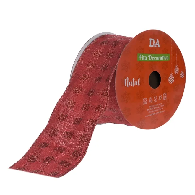 Fitanatal - Aramada - Tecido Xadrez C/ Glitter C/Costura - (Vermelho) - 6,3Cmx9,14M - Da