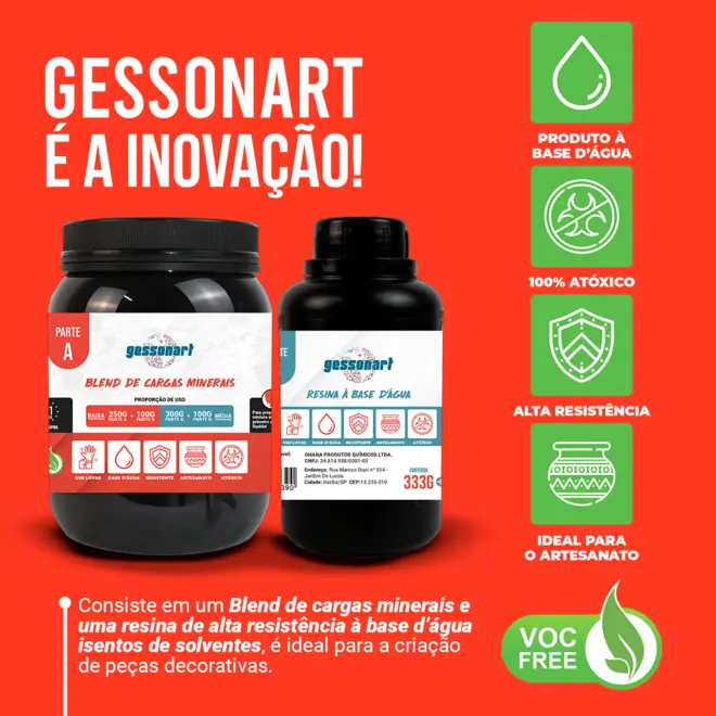 Ideal para quem busca um acabamento profissional, o GESSONART é a escolha certa tanto para artesãos quanto para indústrias criativas.