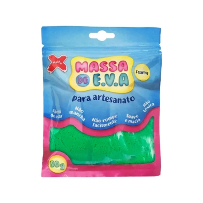 Massa de EVA - 50g - Verde - Make+ é muito leve, delicada e versátil. Muito simples de usar nos mais diversos tipos de modelagem, não se rompe com facilidade e é 100% atóxica. Ah! E as cores são de encher os olhos, tem uma mais linda que a outra, são cores que vão do simples preto e branco até amarelo limão, passando por rosa bebê, roxo e muitas outras cores que você vai amar.