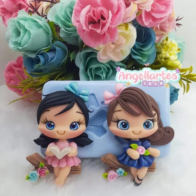 Molde Silicone - Biscuit - Menina no Tronco - Angellartes