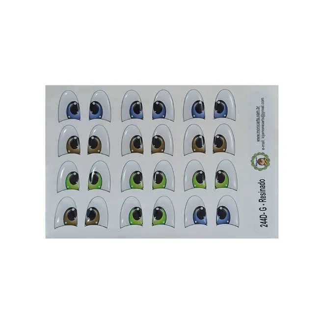 Olhos Resinados Adesivos - ref. 244D - Tam. G - Cartela com 12 pares - Monicarts