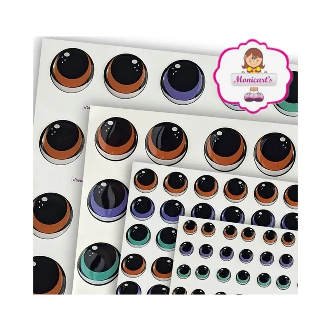 Olhos Resinados Adesivos - ref. 460 - Tam. M - Cartela com 36 pares - Monicarts
