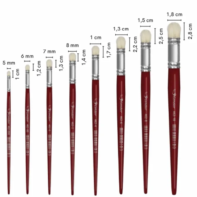 Pincel Condor - Ref 462 - Tam 0 da Linha Stencil com cerda branca importada e cabo curto de madeira verniz incolor. Desenvolvido especialmente para STENCIL, mas também pode ser usado para Colagens, Estamparia, Tecido, Luz Seca, Óleo e Acrílica.