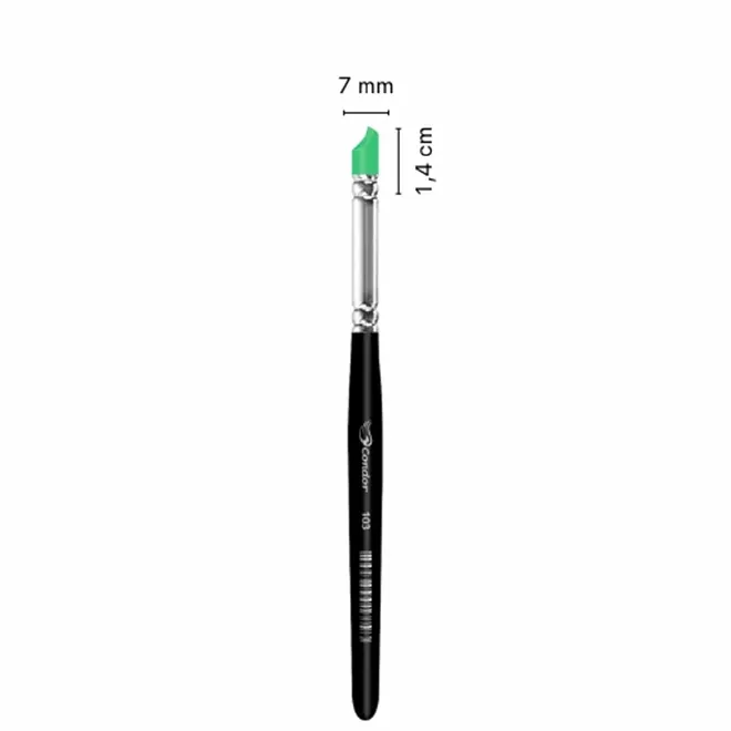Pincel Modelador - Ref 103 da Linha de pincéis Modeladores da Condor são indicados para produzir efeitos especiais com diferentes tipos de tintas em superfície como tela, vidro, cerâmica, porcelana, madeira, plástico, couro entre outras. Além disso, podem ser usados como instrumento na modelagem com alguns tipos de massa.