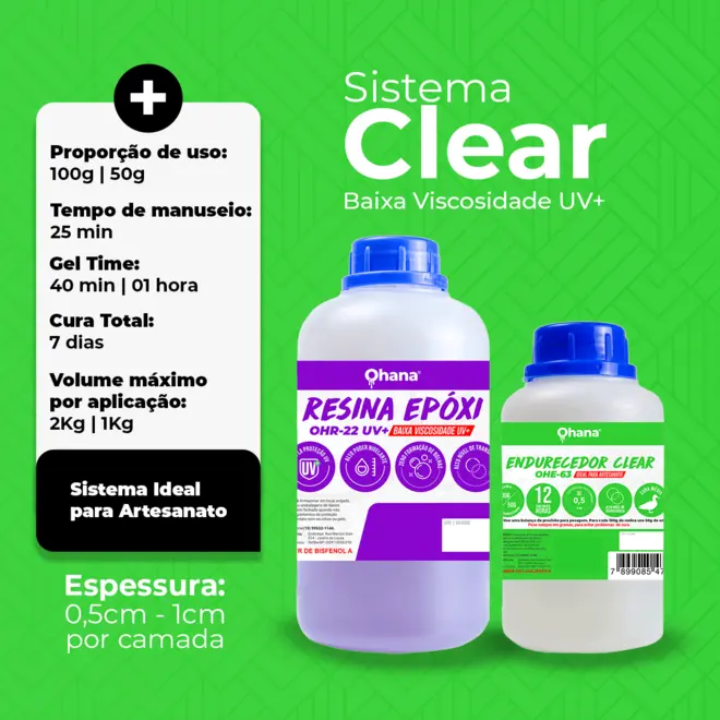 O Sistema Clear Baixa Viscosidade UV é a escolha ideal para aplicações que exigem acabamento cristalino, fluidez superior e cura rápida sob luz ultravioleta. Desenvolvido para oferecer máxima transparência e resistência, esse sistema é perfeito para encapsulamentos, peças artísticas, joalheria, eletrônicos, revestimentos e outros trabalhos de precisão.