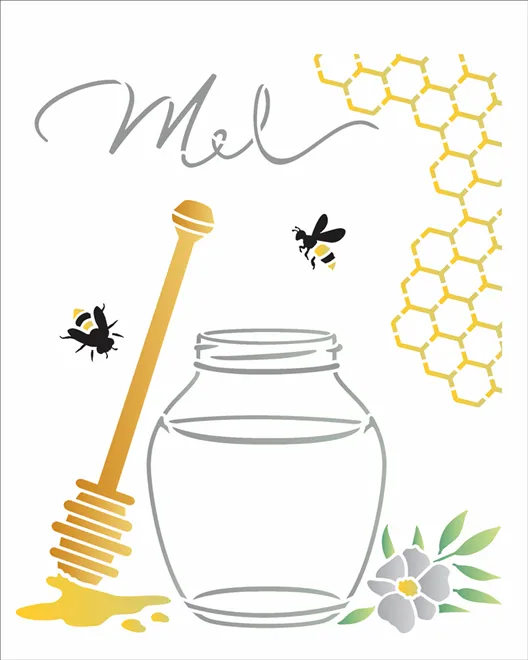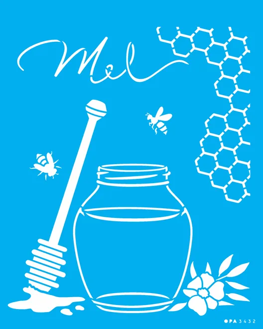 Stencil 20x25cm - Abelhas e Pote de Mel