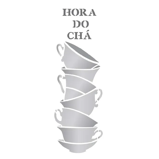 • Stencil - 10x30cm - Xícaras Empilhadas - OPA2235 - Opa Criando Arte