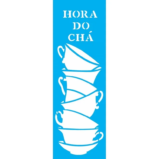 Stencil - 10x30cm - Xícaras Empilhadas - OPA2235 - Opa Criando Arte