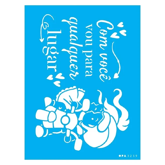 O Stencil (também conhecido como Estêncil) Opa Criando Arte é produzido em acetato e cortado a lazer. Criado com a finalidade de ser utilizado para pintura em diversas superfícies sejam elas planas ou curvas tais como: telas, tapetes, tecidos, entre outros objetos decorativos. É feito de um material resistente que permite fácil manuseio e limpeza de acordo com as informações existentes no produto. Perfeito para soltar a sua criatividade.